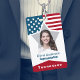 Este crachá de nome personalizado com estrelas e listras em vermelho, branco e azul é um ótimo crachá de identificação para eventos políticos. Identifique facilmente quem são os participantes.