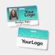 Brilho azul turquesa falso e preto deliciosa por trás de um modelo de foto com moldura preta e branca. Atualize facilmente o nome e o título do trabalho profissional para cada crachá de funcionário personalizado. Há também espaço para um logotipo da empresa - exclua para deixar em branco. O verso apresenta mais brilho falso e um modelo de imagem perfeito para códigos de barras de funcionários. Disponível em muitos outros estilos e cores.