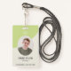 Este crachá é uma forma moderna e profissional de identificar os trabalhadores no local de trabalho. Ele foi projetado com uma paleta de cores verde e cinza e apresenta um número de identificação exclusivo e uma foto para fácil identificação.