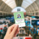 Na frente, personalize a foto, o nome, o cargo, o ID# e adicione o logotipo da sua empresa.