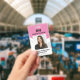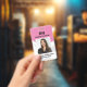 Crachá de fotos com ID rosa profissional com códig