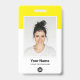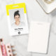Personalize facilmente este Crachá de Funcionário Personalizado com Foto, Código de Barras Qr e logotipo empresarial. Um design empresarial simples em cores amarelo e branco totalmente personalizável na frente e verso, tamanhos, fontes básicas sans-serif e modernas e um visual profissional e claro. Disponível com cordão, clipe metálico ou retrátil. Sem pedido mínimo.