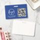 Crachá de identificação personalizado com nome em layout horizontal com seu logotipo e código QR. Use o modelo para adicionar o nome e cargo de cada funcionário. A parte de trás contém suas informações de contato e instruções para devolução, se encontrado. Este design simples, porém profissional, apresenta todo o texto em branco sobre um fundo azul clássico e pode ser alterado para qualquer cor desejada clicando no botão "personalizar". Este crachá de identificação de estilo corporativo pode ser personalizado para qualquer tipo de empresa, grande ou pequena.