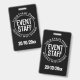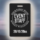 Um crachá para um membro da equipe do evento. Altere a redação para seus detalhes. Crachá de Funcionário do Festival. Crachá de Funcionário de Evento para um cordão ou clipe. Crachá oficial de Funcionário de Evento. Texto branco em um fundo preto.