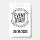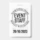Um crachá para um membro da equipe do evento. Altere a redação para seus detalhes. Crachá da equipe do festival. Crachá da equipe do evento para um cordão ou clipe. Crachá oficial da equipe do evento. Texto preto em fundo branco.