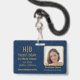 Destaque-se com este crachá de funcionário personalizado azul marinho com um padrão de mini quadrados refinado e um monograma dourado de 2 letras. Projetado para um visual moderno e profissional, este crachá pode ser personalizado com o nome do funcionário, cargo e logotipo da sua empresa—ideal para escritórios sofisticados, equipes de varejo, eventos corporativos e mais.