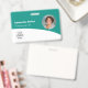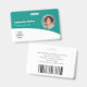 Personalize estes crachás de funcionário horizontais azul turquesa com uma foto do funcionário, logotipo da empresa, código de barras, id do funcionário e nome.