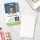 Um desenho básico de negócios que destaca os logotipos do seu escritório e o nome do funcionário. Você pode adicionar uma barra de código de scan na frente e atrás. Você também pode alterar a cor do fundo. Este desenho de escritório tradicional também inclui um número de ID do crachá, data de validade e um local para adicionar informações se o crachá for perdido.