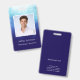 Personalize facilmente este crachá de identificação de funcionário moderno e único com um nome, profissão e foto. Esta crachá azul escuro com texto branco simples e claro pode ser editado para seus propósitos. Adicione seu nome e cargo e foto na frente, no verso há um espaço para mais texto personalizado. Você pode adicionar um número de identificação, ou endereço da empresa, número de telefone, e-mail ou endereço do site. Eu criei este design único com névoa de nebulosa branca e azul. Ele fica legal no fundo azul escuro. Este seria um ótimo crachá de identificação de funcionário para especialistas em áreas de ciência e tecnologia, TI, designer web, aeroespacial ou loja de jogos.