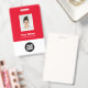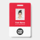 Personalize facilmente este Crachá de Nome de Funcionário Vermelho Personalizado com foto, código de barras e logotipo da empresa. Um design empresarial simples em cores azul-marinho e branco totalmente personalizável na frente e nas costas, tamanhos, fontes básicas e modernas sem serifa e um visual profissional e claro. Disponível com cordão, clipe de metal ou retrátil. Sem pedido mínimo.