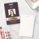 Personalize facilmente este crachá de identificação de funcionário profissional de luxo burgundy e dourado com seus detalhes personalizados.