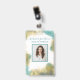 Crachá de ID de Aquarela Líquida Teal E Dourada Mo