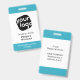 Este elegante crachá de conferência é perfeito para qualquer empresa que queira dar a seu funcionarios um aspecto individualizado com texto e cores personalizados. O design apresenta um fundo azul-turquesa, preto e branco que também pode ser facilmente personalizado!