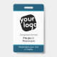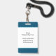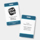 Este crachá de conferência elegante é perfeito para qualquer empresa que procure dar ao seu pessoal uma aparência individualizada com texto e cores personalizados. O design apresenta um fundo azul-esverdeado, azul, preto e branco que pode ser facilmente personalizado, também!