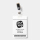Este crachá de conferência elegante é perfeito para qualquer empresa que procure dar ao seu pessoal uma aparência individualizada com texto e cores personalizados. O design apresenta um fundo preto, branco e cinza claro que pode ser facilmente personalizado, bem como o logotipo e o código de barras.
