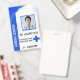 Crie um crachá de identificação de funcionário de hospital profissional com seu logotipo personalizado e foto da equipe. Este design azul limpo é perfeito para enfermeiros, médicos e funcionários de saúde. Personalize o nome, título e detalhes do hospital facilmente no editor da Zazzle. Ideal para hospitais, clínicas e consultórios médicos que buscam um design de crachá moderno e confiável.