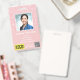 Faça upload facilmente do seu próprio logotipo, foto, código QR ou código de barras. Destaque-se da multidão com um brilho divertido e alegre nos crachás de identificação da sua equipe. O texto extra diz "Totalmente Vacinado". O modelo editável inclui nome, cargo, qualificação, data de emissão e validade. Crachá de ID de Foto com Código QR e Barra em Brilho Rosa. Veja nossa coleção para mais ideias de crachás de identificação fotográficos.