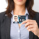 Crachá de ID de foto do código QR azul | Funcionár