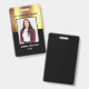 Modelo de crachá de ID metálico dourado e preto com foto, título e nome. Para autônomos ou proprietários de pequenas empresas para eventos e outras atividades comerciais. Moderno e atraente. Basta adicionar sua própria foto profissional. VOCÊ PODE ADICIONAR UM CORRENTÃO, CLIP OU ACESSÓRIO RETRÁTIL. Veja as opções de acessório à direita.