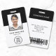 Crachá de ID de foto de funcionário simples e moderno em preto e branco. Personalize a frente com o seu logotipo, nome da foto do funcionário e cargo. No verso, adicione o nome da sua empresa e outras informações e um código de barras (ou exclua).