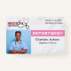 Crachá de identificação profissional de fotos, adaptado aos profissionais de saúde. Personalize com seu nome, cargo, departamento, foto, número de ID, logotipo do hospital e código de barras. A parte traseira inclui detalhes de contato e devolução. Ideal para enfermeiros, funcionarios e profissionais de saúde em hospitais e clínicas.