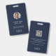 Aumente sua segurança corporativa com nosso Crachá de ID de Funcionário de Código QR de Foto Personalizado. Apresentando uma foto, um nome e um título personalizáveis para funcionários na frente, juntamente com o seu logotipo, este crachá expele profissionalismo e funcionalidade. A parte traseira oferece espaço para um código QR personalizado, nome e endereço da empresa ou texto personalizado, fornecendo identificação abrangente para o seu funcionarios. Com um rico fundo azul marinho e uma tipografia clássica de cinza, este crachá oferece um design moderno e minimalista adequado a qualquer ambiente empresarial. Aumente a sua marca corporativa e as medidas de segurança com nossa solução personalizável de crachá de ID.