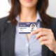 Um crachá moderno com um layout profissional com um código de barras sob a foto do funcionário. Ideal como ID de funcionário para sua empresa ou local de trabalho. Adicione a fotografia, o nome e a ocupação do seu funcionário, bem como o seu próprio código de barras. Informações opcionais, como um número de ID do crachá ou data de expiração, podem ser incluídas ou deixadas de vazio.