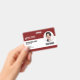Um crachá moderno com um layout profissional com um código de barras sob a foto do funcionário. Ideal como ID de funcionário para sua empresa ou local de trabalho. Adicione a fotografia, o nome e a ocupação do seu funcionário, bem como o seu próprio código de barras. Informações opcionais, como um número de ID do crachá ou data de expiração, podem ser incluídas ou deixadas de vazio. Cor: vermelho marrom