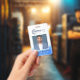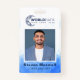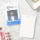 Crachá moderno de identificação de foto com padrão geométrico azul e código de barras. Possui espaço para nome do funcionário, título, logotipo da empresa, número de ID, data de expiração e instruções de devolução. Uma solução limpa e profissional para identificação de escritório, tecnologia ou negócios. Facilmente personalizado para equipes corporativas ou remotas.