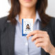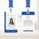 Um design de negócios azul moderno que destaca os logotipos da sua empresa e o nome do funcionário. Você pode adicionar um código de barras de varredura no verso. Você também pode alterar a cor do fundo conforme necessário. Edição simples!
