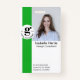 Crachá verde de ID de funcionário elegante e profissional com uma grande foto personalizável, nome, cargo, logotipo da empresa e código QR exclusivo. Inclui o número de ID impresso e informações de devolução na parte traseira. Ideal para consultores, equipes, funcionarios de negócios ou eventos corporativos.