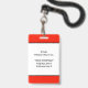 Este crachá elegante é perfeito para qualquer empresa que queira dar a seu funcionarios um olhar individualizado com texto e cores personalizados. O design apresenta um fundo vermelho, preto e branco que também pode ser facilmente personalizado!