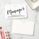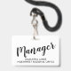 Um simples crachá de identificação de gerente moderno e elegante, apresentando um título de tipografia cursiva e seu nome e nome da empresa ou região. Simples, moderno, elegante. Para funcionários da equipe de gestão para reuniões, eventos e convenções.