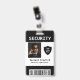 Foto facilmente personalizável do pessoal de segurança, crachá com código de bar e logotipo da empresa. O crachá está disponível com um clipe de metal, retrátil ou de ferro. Concebido por 1bizChoice (direitos reservados).
