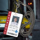 Foto de funcionário da empresa facilmente personalizável, crachá com código de bar e logotipo da empresa. O crachá está disponível com um clipe de metal, retrátil ou de ferro. Concebido por 1bizChoice (direitos reservados).