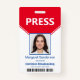 Carregue facilmente a sua própria fotografia e código de Bar. Crachá de imprensa personalizado com ID de foto e código QR. Personalize o título do trabalho, seu nome e nome da empresa de acordo com suas necessidades. O reverso tem 'Se encontrado retornar para". Crachá de ID do Código do Bar de Fotografia Pass Press Editorial. Esta foto de modelo e o Código de Bar são apenas para fins de demonstração.