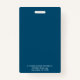 Mostre profissionalismo com este crachá de ID de funcionário minimalista azul marinho. Personalize com seu logotipo, foto, nome, cargo, número de identificação e código de barras. A parte traseira apresenta uma seção de retorno para maior segurança. Excelente para funcionarios de escritório, equipes corporativas e profissionais de saúde.