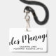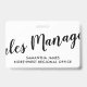 Um simples crachá de ID do gerenciador de vendas moderno na moda com um título de tipografia de script e seu nome e nome de empresa ou região. Simples, moderno, na moda. Para funcionarios de gestão para reuniões, eventos e convenções.