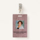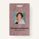 Cartão de identificação de empresa de fotos moderno com código de barras sobre a imitação de padrão de snakeskin rosa. Informações adicionais podem ser adicionadas à parte traseira deste crachá de ID de negócio