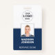 Crie um Crachá personalizado de Nome do Funcionário com uma foto personalizada, código de barras digitalizável e logotipo da empresa. Este design elegante e profissional, disponível em azul e branco marinho, é totalmente personalizável em ambos os lados. Escolha entre uma variedade de fontes sans-serif modernas para uma aparência limpa e contemporânea. O crachá está disponível com opções para um pátio, clipe de metal ou bobina retrátil. Além disso, não há requisitos mínimos de pedido