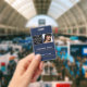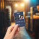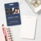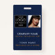 Um moderno crachá de negócios minimalista personalizado com logotipo e foto de negócios. Personalize com seu logotipo, foto e detalhes para criar seu crachá de negócios único, azul e branco. Personalize ainda mais com um fundo ou fonte de cor personalizados.