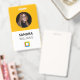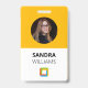 Crachá de identificação personalizado amarelo de docente. Adicione qualquer empresa e nome de funcionário, foto, logotipo, endereço, número de telefone, site e código de barras. Disponível em várias cores para atender às necessidades de identidade da sua empresa.