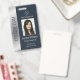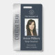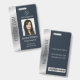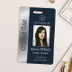 Personalize facilmente este crachá de identificação de funcionário com estilo luxuoso profissional prata e azul com seus detalhes personalizados.
