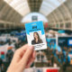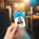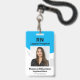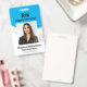 Crachá de identificação azul profissional com códi