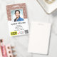 Faça upload facilmente do seu próprio logotipo, foto, código QR ou código de barras. Destaque-se da multidão com um brilho deliciosamente divertido nos crachás de identificação de seu pessoal. O texto extra diz "Totalmente Vacinado". O modelo editável inclui nome, cargo, qualificação, data de emissão e validade. Crachá de Identificação com Código QR e Foto de Cuidador com Brilho Marrom. Veja nossa coleção para mais ideias de crachás de identificação com foto.