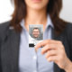 Crachá de identificação com foto e logotipo preto