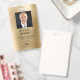 Cadalete de Identificação Personalizado Moderno Falso Dourado Metálico Corporativo. Personalize este crachá de identificação corporativo com o nome do seu funcionário, cargo, foto e logotipo da sua empresa na frente e seu texto de informação personalizado no verso. A foto do funcionário funciona melhor no formato quadrado. Seu logotipo funciona melhor como um PNG em formato quadrado com fundo transparente. O logotipo marcador de posição que você vê no crachá será completamente substituído pelo design do seu próprio logotipo.