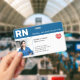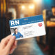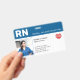 Um design de crachá de identificação limpo e profissional criado para ambientes de saúde. Este layout apresenta um cabeçalho RN em negrito, nome e credenciais personalizáveis e espaço para uma foto para criar uma primeira impressão polida e confiável.