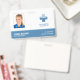 Um crachá de identificação elegante para a equipe médica e funcionários do hospital. Ideal para enfermeiros e médicos de clínicas e casas de repouso. O design exibe uma foto do funcionário, o nome do funcionário e cargo. Além disso, inclui espaço para um número de identificação e data de validade. O nome do hospital é exibido no canto superior direito e apresenta um logotipo, nome do hospital e slogan.