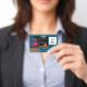 Crachá de identificação de foto azul de professor